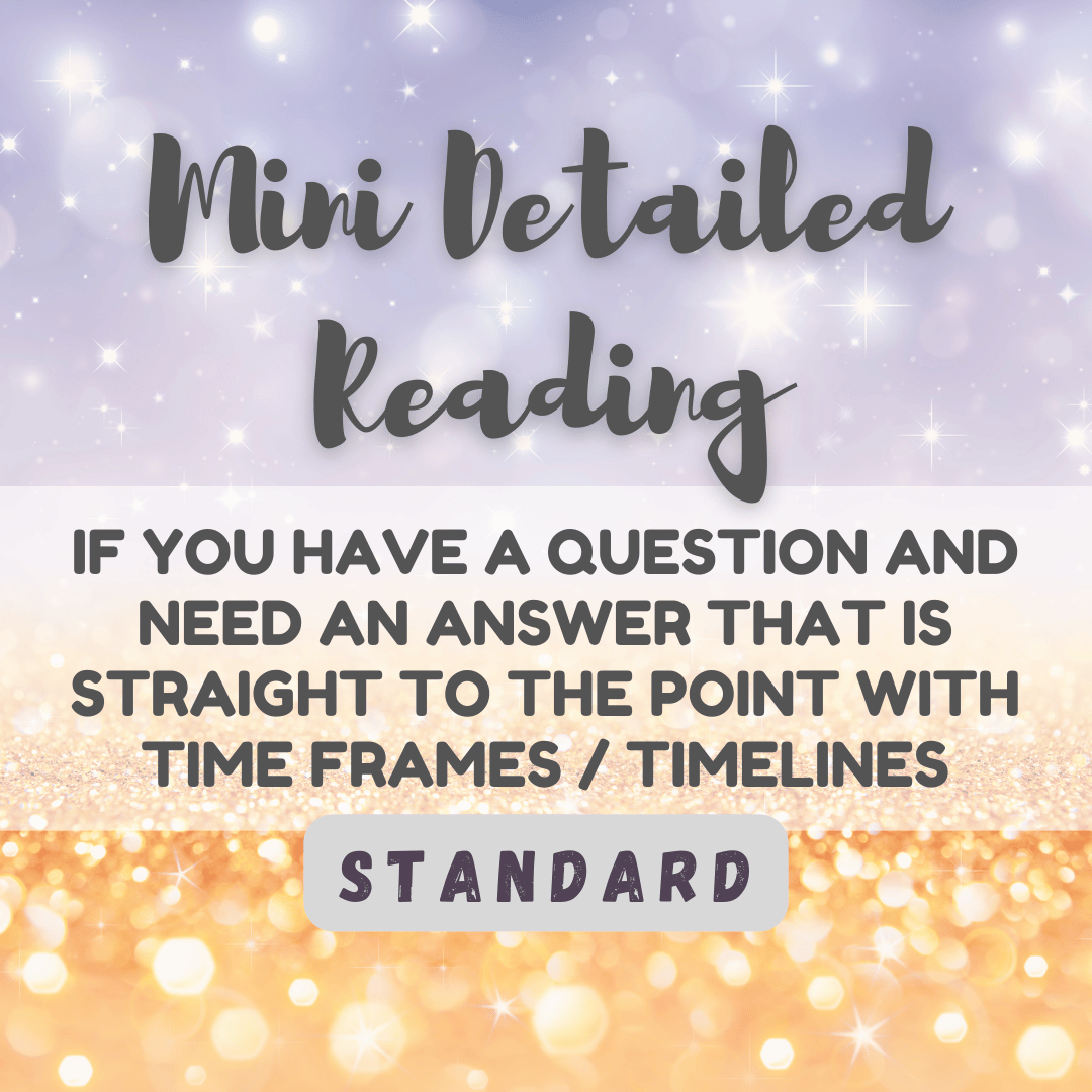 Welcome to the Mini Detailed Reading – a swift and comprehensive exploration of your questions. This service is designed for those seeking straight-to-the-point answers with Mini Detailed Reading for insights, including time frames and timelines if applicable.